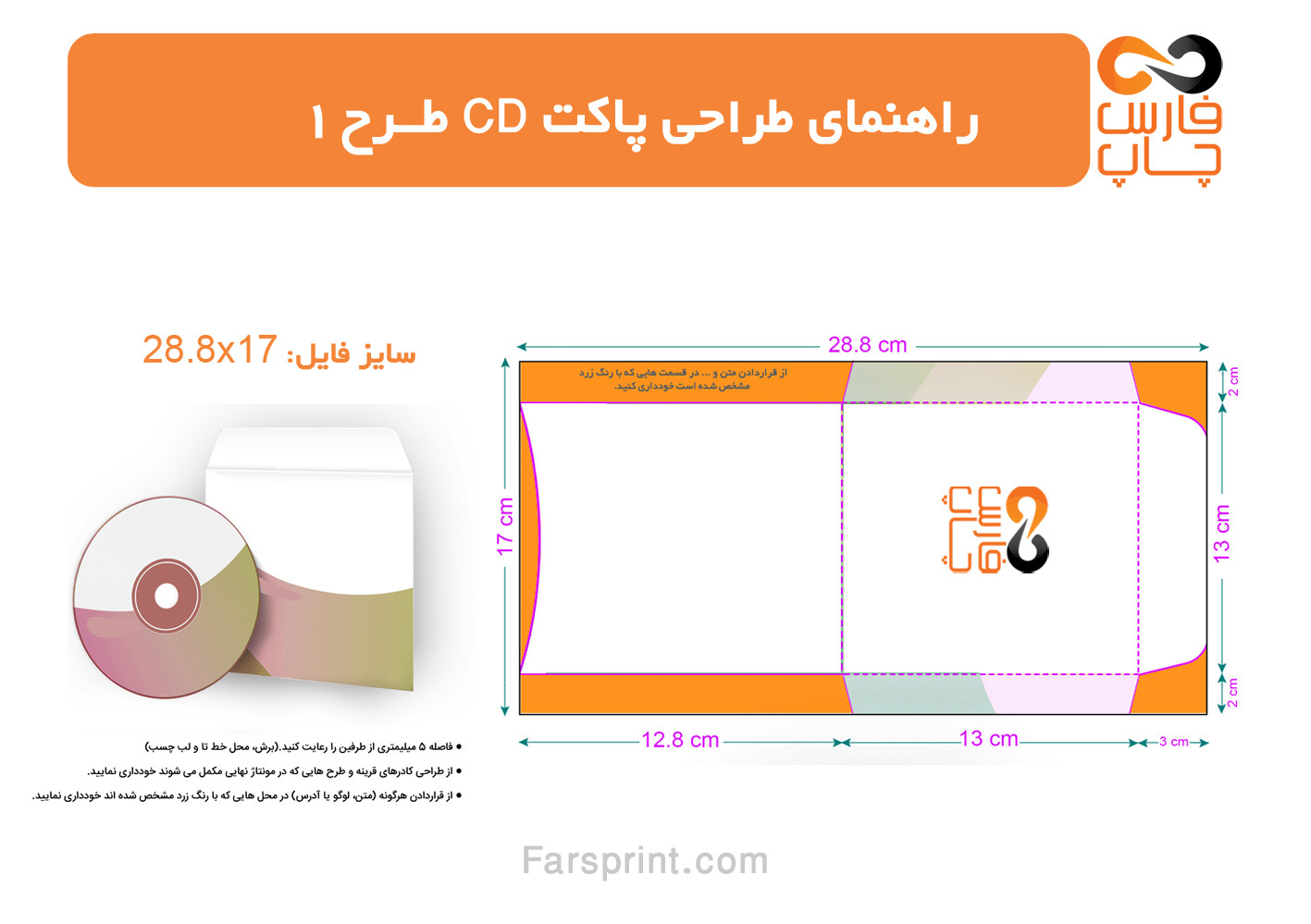 فایل نهایی باید در فرمت JPEG/JPG و با رزولوشن ۳۰۰dpi آماده شود. تیم فارس چاپ در صورت نیاز شما را راهنمایی میکند.