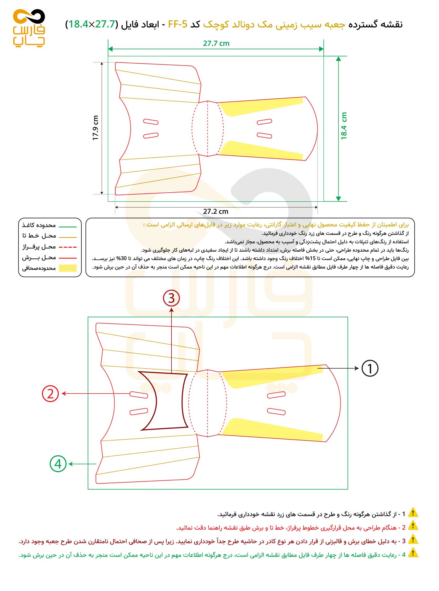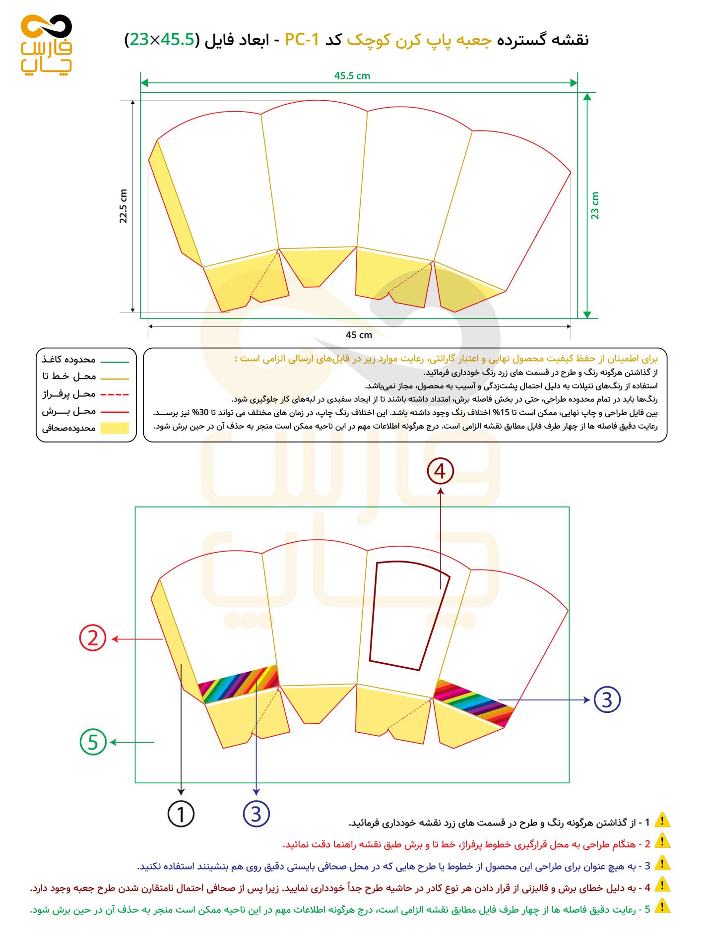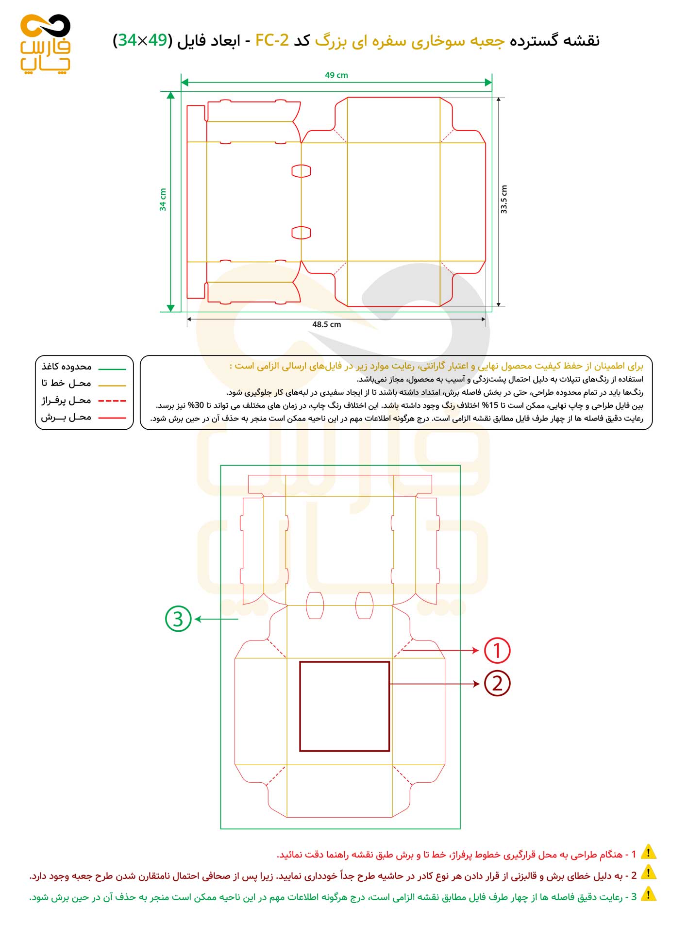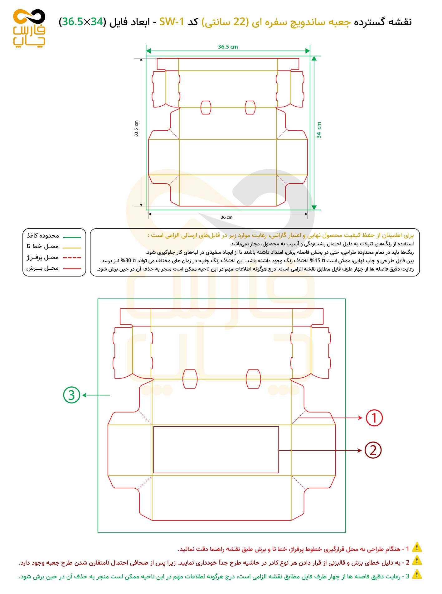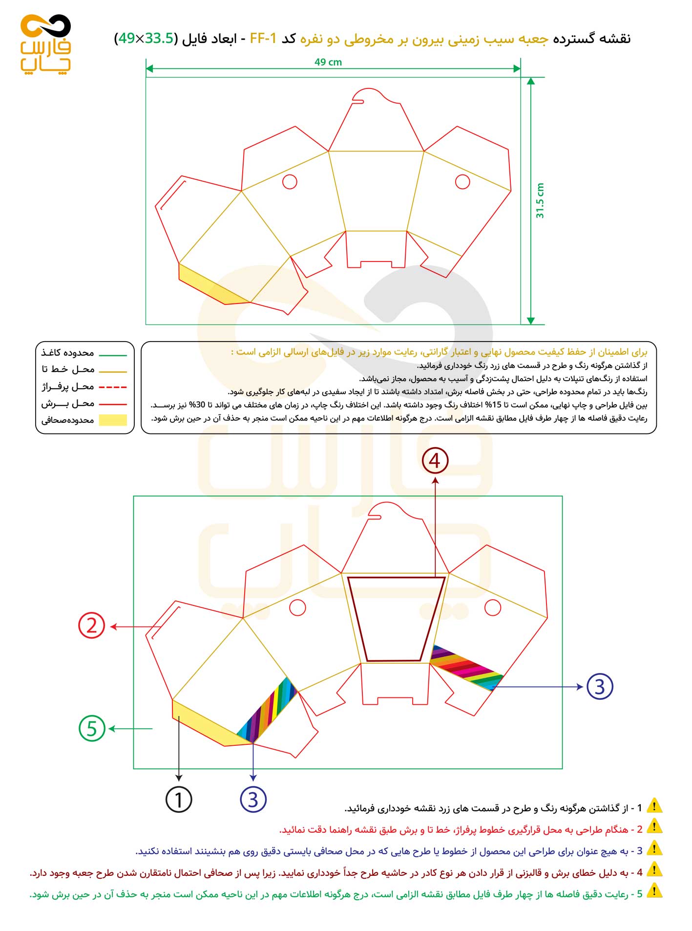 - برای زیبایی هرچه بیشتر محصول، در هنگام طراحی از قرار دادن متن و نوشته ها در فاصله کمتر از 2 سانتیمتری حاشیه های جعبه خودداری نمایید.