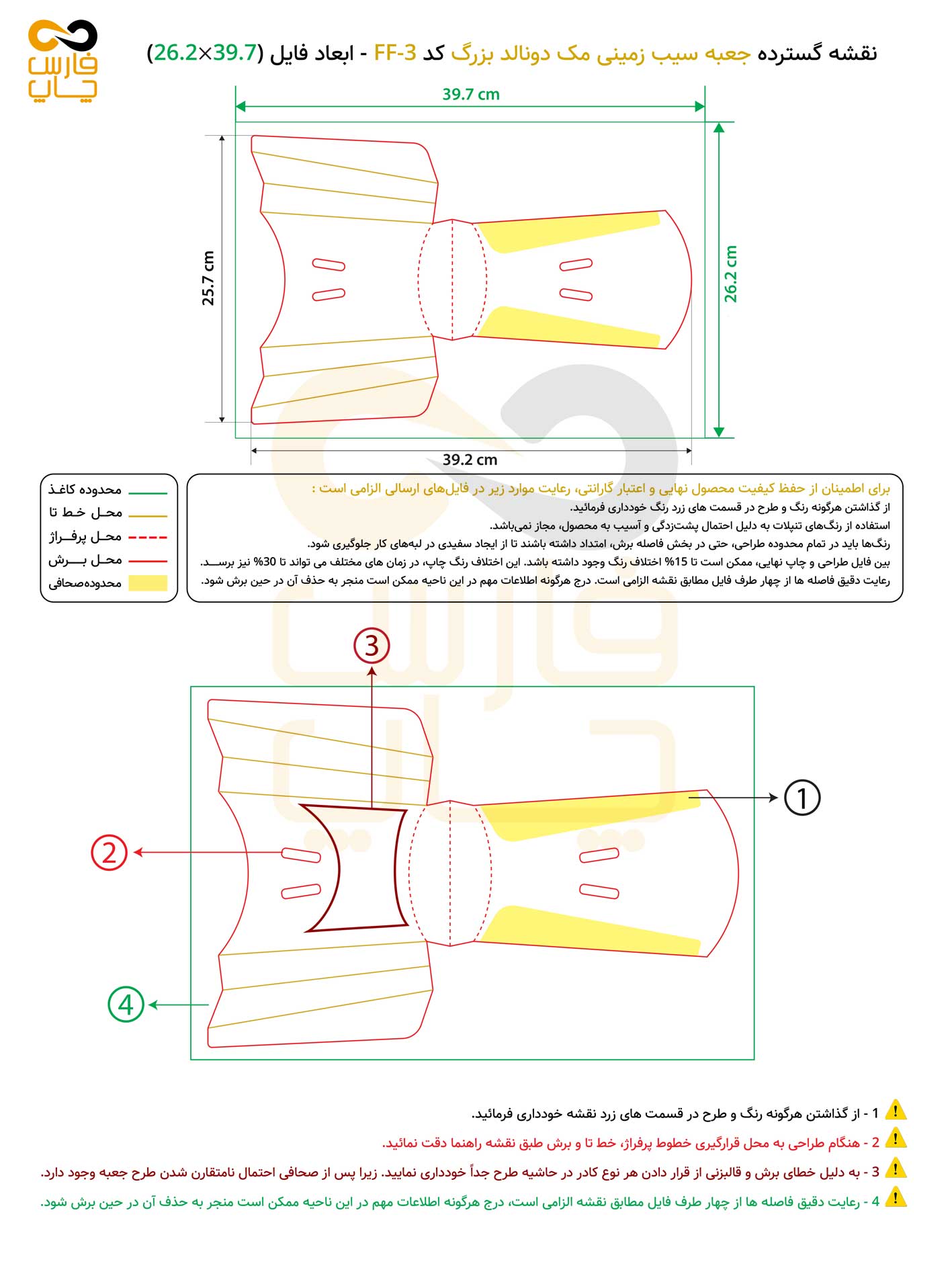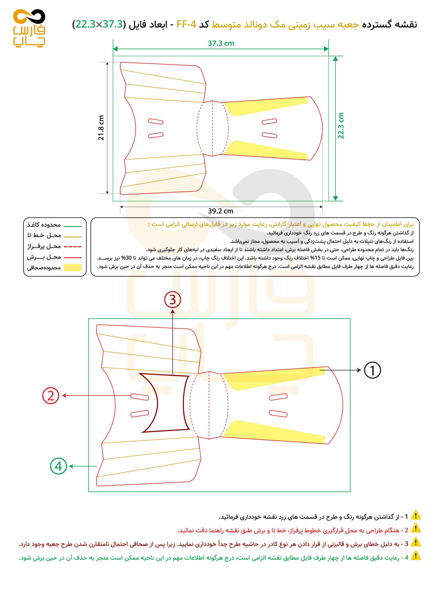 - یادآور می شویم هر گونه خسارت ناشی از عدم رعایت دستورالعمل فوق فقط متوجه سفارش دهنده خواهد بود. همچنین به دلیل حجم بالای سفارشات در زمان دریافت سفارش این گونه فرض می شود که طراح فایل ارائه شده نکات فوق را در طرح خود در نظر گرفته و بنابراین هیچ گونه نظارت و تغییری در فایل ارسالی شما، انجام نخواهد گردید.